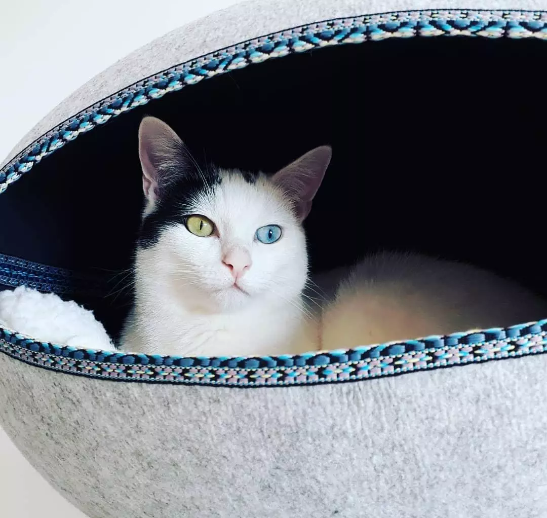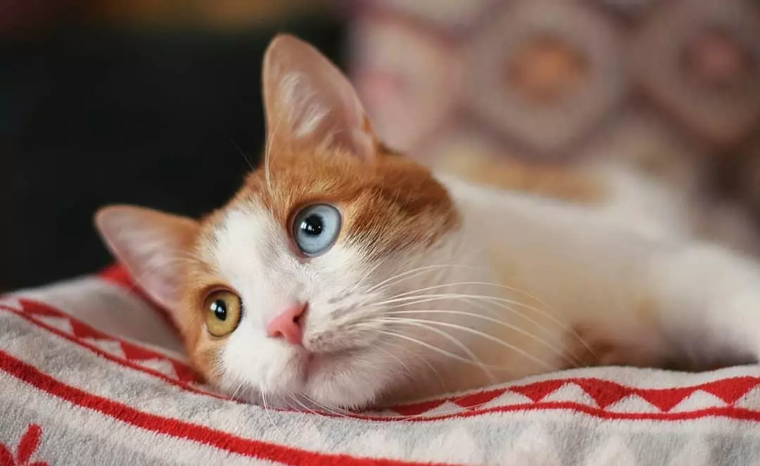 异色瞳,指的是猫咪两只眼睛颜色不一样,也叫鸳鸯眼、怪眼,大多出现在拥有白色被毛的猫咪身上。其实这种异色瞳是一种病症,科学上叫做虹膜异色症,通常拥有遗传性,是在猫咪发育过程中黑色素无法正常均衡沉淀在虹膜中导致的,它出现的主要原因是缺乏遗传多样性。所以最初拥有异色瞳的大都是近亲繁殖出来的,而且大多是纯白色猫咪或身上有白毛的猫咪,异色瞳黑猫少之又少。