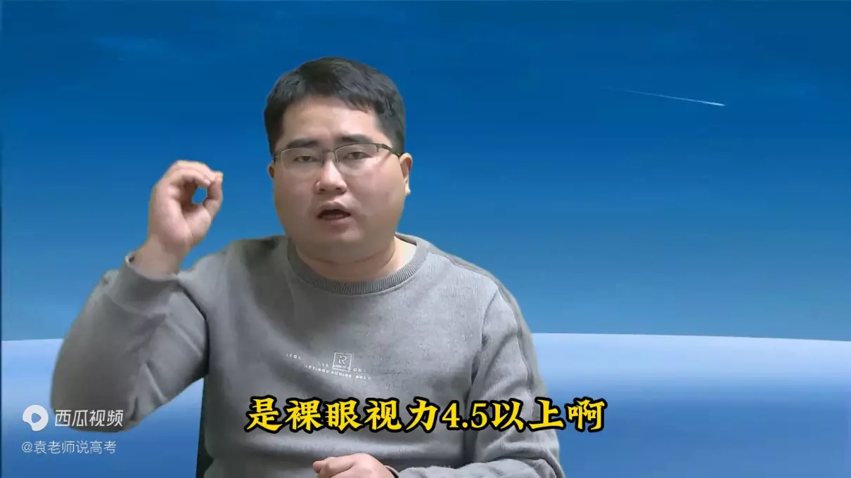 这里还要提醒大家,现在很多学生因为近视或散光而戴上了眼镜。这是每年军校或当兵算下来最多的一个原因。按照要求,裸眼视力必须达到4.5以上,最低要求是4.0。