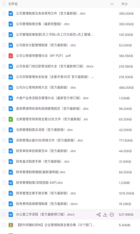 现在购买专栏的读者,还可以额外赠送如下已更新的500套职场办公资料课件文档。