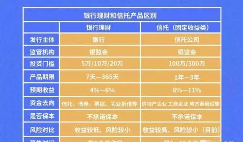 银行的理财产品收益3-5%,信托理财产品收益7-9%左右,在银行购买信托需支付发行费,也就是管理费。