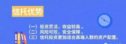 信托公司是目前唯一准许同时在资本市场、货币市场和实业领域投资的金融机构。信托产品投资灵活,投资领域多元化,所以在一定程度上有效降低投资风险,实现投资人收益最大化。期限灵活,收益高于存款和银行理财产品。期限从1天期限,到3年期不等,收益率相比较银行理财产品高1%~3%左右,优势非常明显。
