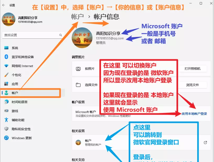 如果有微软Microsoft账户了,就是类似图片的显示,如果这里显示本地账户,那么就需要注册一个微软Microsoft账户。
