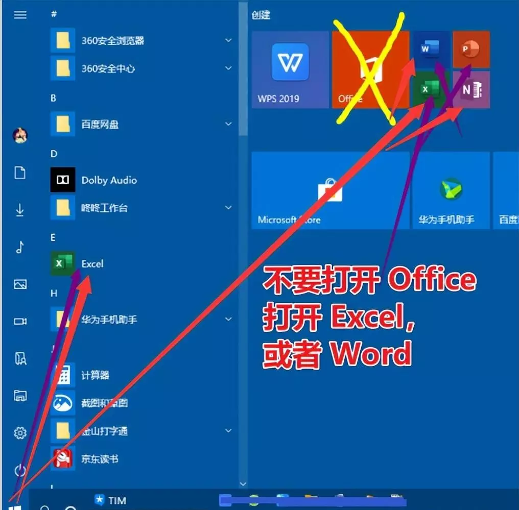 在电脑的开始菜单中,找到 Excel、PowerPoint、或者Word 其中一个打开。