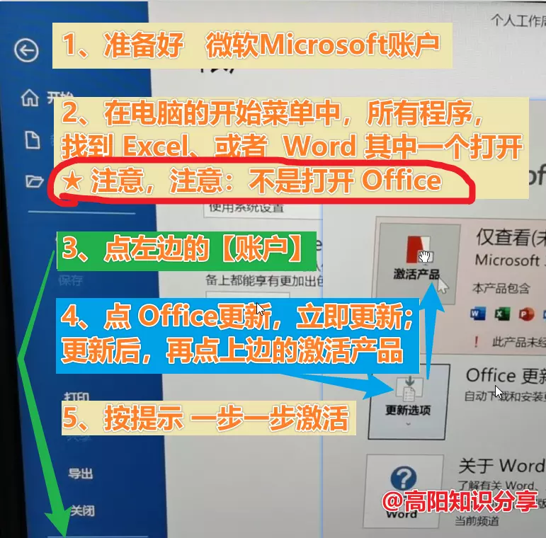 ★★★注意:不是打开Office,不是打开Office,是打开 Excel、PowerPoint、或者Word 其中一个★★★