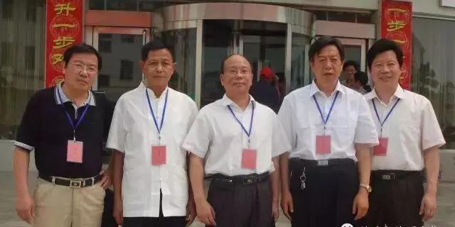 袁义达研究员(中)2008年7月11日在登封市参加“全国许由文化研讨会”与全国著名姓氏研究专家何光岳、张新斌、李立新及王道生会长合影
