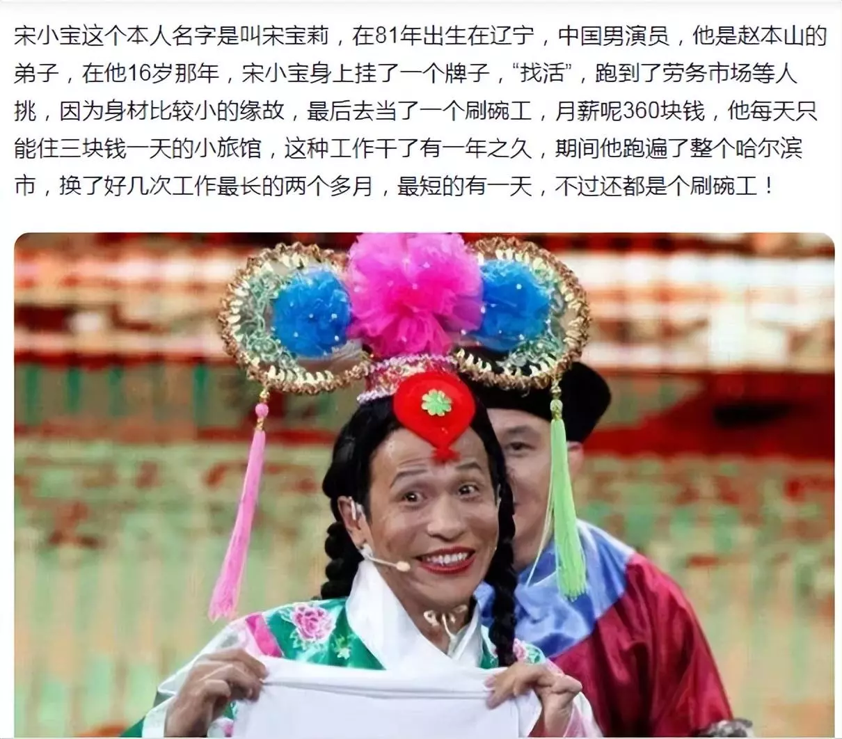与汪小菲一个天上一个地下,宋小宝小时候家里实在太穷,据说比穷鬼他们家还穷,初中没毕业就只好识趣的自动退学,跑社会开始了童工生涯。