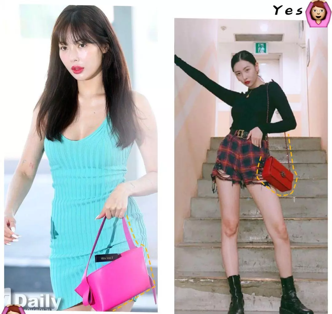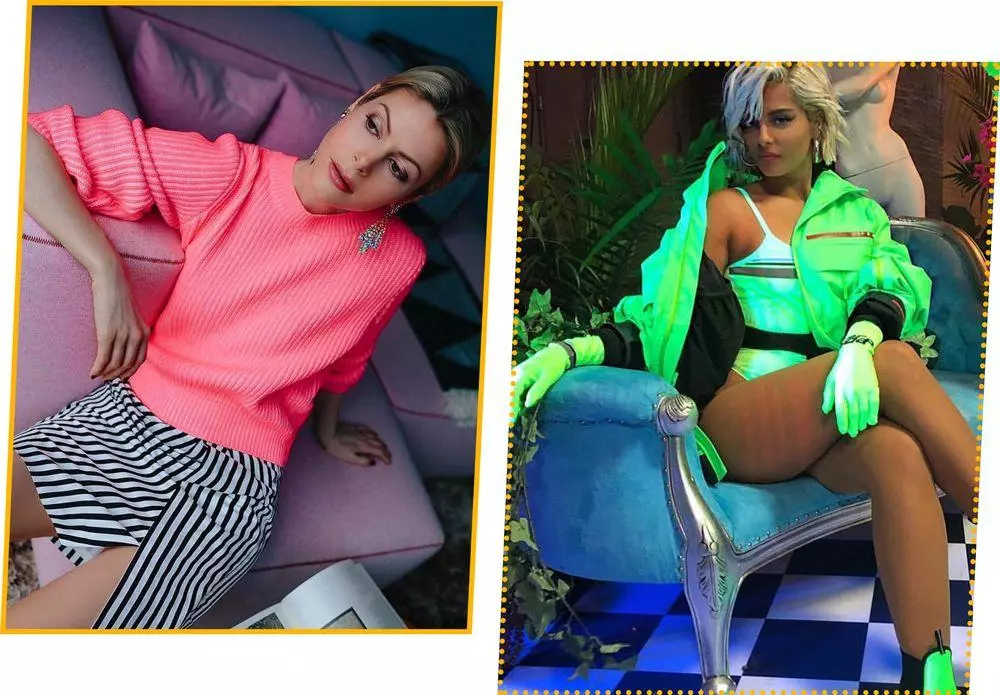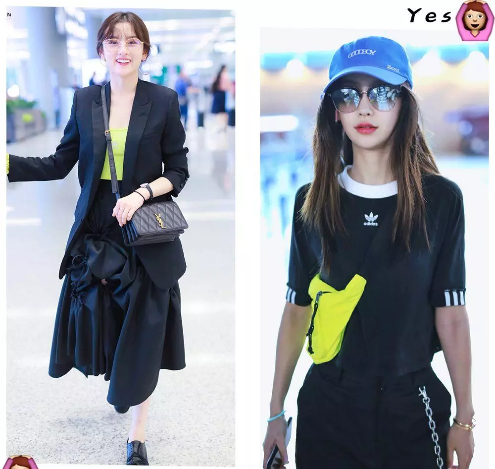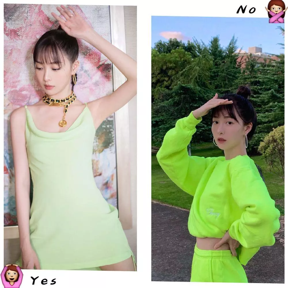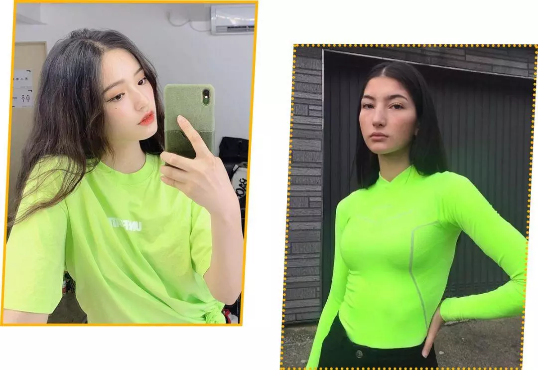 荧光色是夏季很流行的一个色系,估计不少妹子都有踩过这个坑吧,荧光色也是属于高饱和度色,特别是在阳光下,身体就像是反光镜一样,格外的刺眼!可能很多人以为自己穿了荧光色会像图左那样清新迷人,其实,你是图右,黝黑的皮肤瞬间暴露。