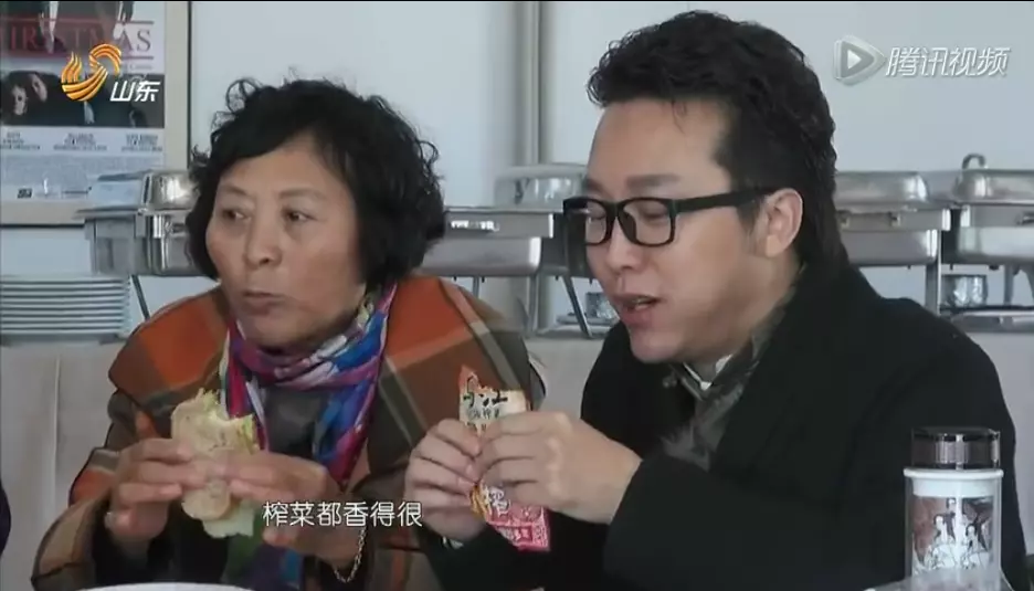 在一档节目中,明星们带着父母去国外穷游,由于他们在街头卖艺并没有赚到很多钱,因此午餐时只能吃榨菜啃面包。