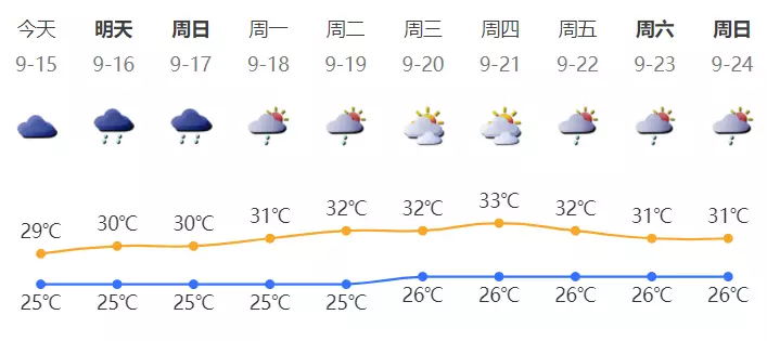 深圳今日阴天转中到大雨,局部暴雨;气温25-29℃;偏东风3级,雨时最大阵风6-8级;相对湿度75%-95%。