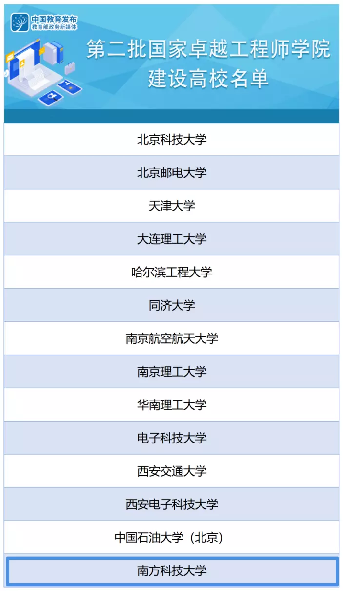 ● 近日,教育部办公厅发布《关于开展第二批国家卓越工程师学院建设工作的通知》全国共有14所高校成功入选,南方科技大学是其中之一。