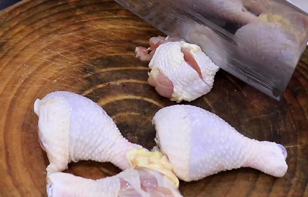 准备鸡腿几个,已经提前浸泡洗干净了,现在在每个鸡腿上面各划上几刀,这样更容易煮熟入味。