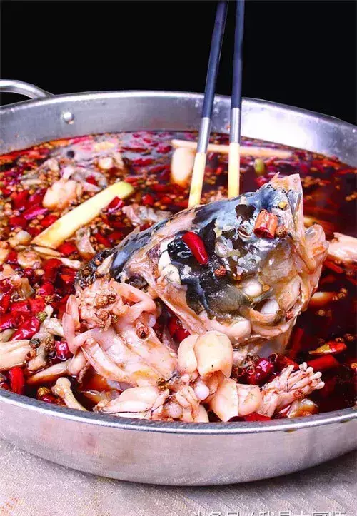 这款鱼头火锅虽然在做法上延续了传统四川火锅香辣的特点,但其辣味却比较柔和,故鱼头的鲜味并没有受到影响,非常适合江浙一带不能食辣地区酒店厨师烹制。