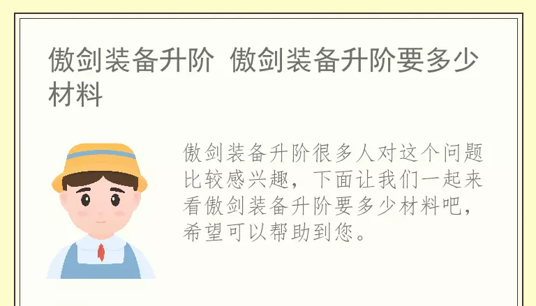 傲剑装备升阶很多人对这个问题比较感兴趣,下面让我们一起来看傲剑装备升阶要多少材料吧,希望可以帮助到您。