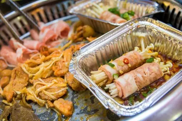 非烤勿扰自助餐吧选择让你多到选择无法取舍。一进门口,不要被一个长达三米多的大型冰柜震撼到,一整个冰柜的肥牛、肥羊、五花肉、鱿鱼、鲜虾应有尽有,还有蔬菜、点心、凉热菜。总之,你想得到的、想不到的,这里几乎都有。价格也很亲民,平日里午餐49元/人,晚餐59元/人。