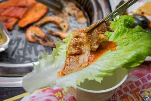 把全部的肉放到烤炉上的,等待肉变色后就可以开动了。腌制的肉不太能看的出来颜色的变化,食客们最好耐心地等久一些,以确保烤肉熟透。非烤勿扰贴心地为食客准备了十几种酱料,其中秘制烤肉酱广受好评,配合着生菜包肉的吃法,清爽不油腻,多吃几盘肉都无压力!