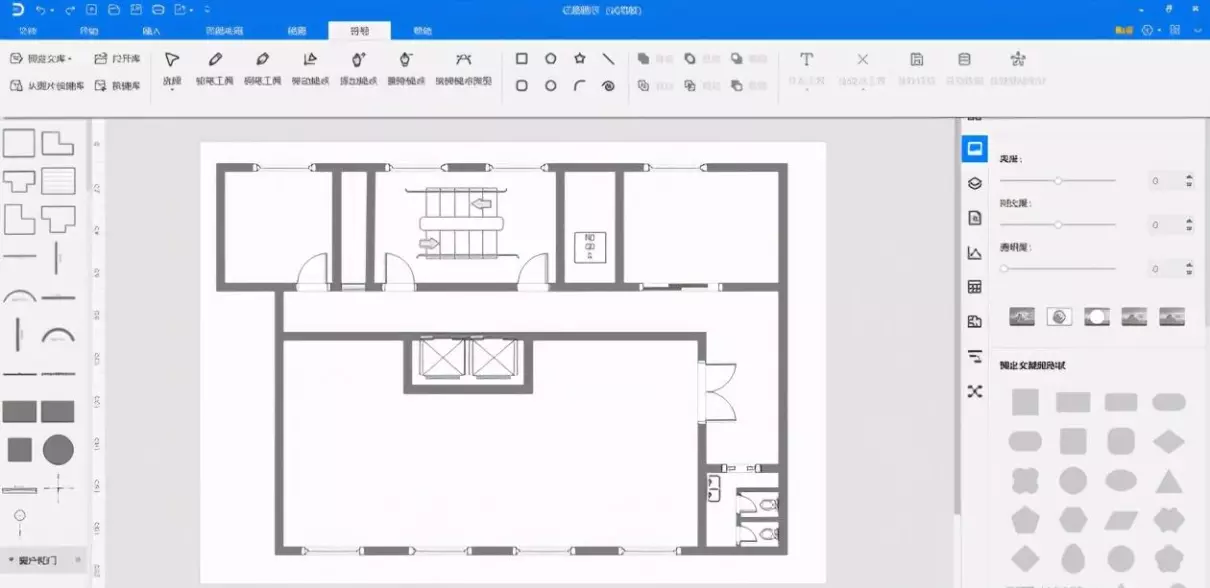 亿图图示的设计界面十分精致,风格类似于office,属性栏,选项栏,状态栏等一目了然,看起来非常舒适。