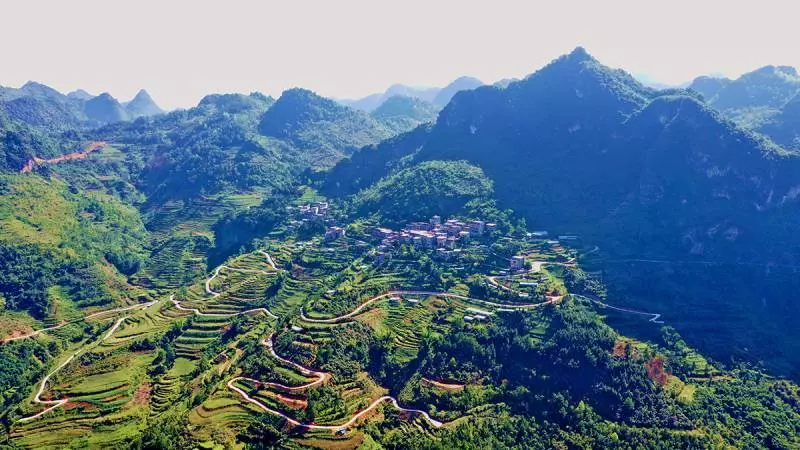 广西百色市那坡县龙合镇惠布村呈蜘蛛网式的“屯屯通”公路。 冯忠兴摄
