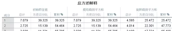 在因子分析的结果中,用于评价架构效度的主要指标有累积贡献率、共同度和因子负荷。累积贡献率反映公因子对量表或问卷的累积有效程度,共同度反映由公因子解释原变量的有效程度,因子负荷反映原变量与某个公因子的相关程度。为了提升调查问卷的质量,进而提升整个研究的价值,因此是研究过程中必不可少的重要环节。