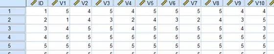 CORRELATIONS /VARIABLES=scorestudent V1 V2 V3 V4 V5 V6 V7 V8 V9 V10 V11 V12 V13 V14 V15 V16 V17 V18 V19 V20 V21 V22 V23 V24 V25 V26 V27 V28 V29 /PRINT=TWOTAIL NOSIG /MISSING=PAIRWISE.示例2:某研究者在一项中学知识管理与学校效能关系的研究中,自编“学校知识管理量表”,此表共有19题,为探究量表的可信效度及题项的适切性,随机抽取200人进行测试,求此19题的结构效度如何?(本案例数据来源吴明隆,《问卷统计分析实务》)量表题项设置见表1,该量表围绕知识创新1—6题,知识分享7—13题和知识获取14—19题进行编排,预调查数据见如下,试对结构效度进行分析