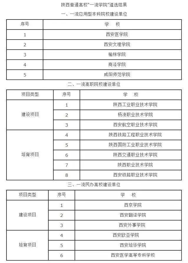 高职专科类院校和民办院校可以参考上图,这是陕西省普通高校“一流学院”遴选结果。