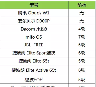 蓝牙耳机作为电子数码产品最影响使用寿命的就是防水性能,一旦受到水渍侵袭如果没有做好防水措施就可能夭折,因而防水等级就显得尤为重要。我们先对比一下下面几款耳机的防水等级参数:Apple AirPods、腾讯 Qbuds W1、赛尔贝尔 D900P均没有做防水系统,防水系数为零;Dacom 果粉8、索尼 WF-SP700N 、Bose SoundSport Free 、魔声 AirLinks Elements、三星 gear iconx2018 、华为 FreeBuds这几款耳机防水等级为IPX4级防水,捷波朗做到了IPX6级防水,而mifo O5却做到了IPX7级防水,相比其它耳机防水性能更胜一筹。