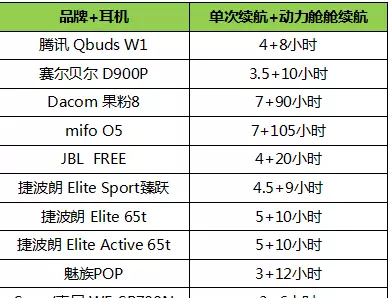 目前TWS耳机中,捷波朗的臻律5+10小时(单次续航5小时和动力舱续航10小时),魅族的POP3+12小时,mifo O5 续航100小时。我们有一个续航误区,认为体积越大电池续航越大,其实续航大小与充电仓大小并无直接联系,3000Am的充电宝未必就比2000 Am体积大,而是空间和技术的合理利用,Dacom 果粉8也不过7+90小时,但体积比mifo O5差不多大一倍。我们在享受持久续航的同时也同样可以拥有易于携带和精巧美观的蓝牙耳机体验。