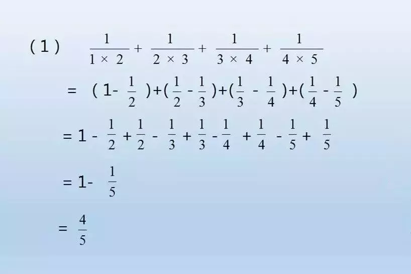 分数裂项是指将分数算式中的项进行拆分,使拆分后的项可前后抵消,这种拆项计算称为裂项法.常见的裂项方法是将数字分拆成两个或多个数字单位的和或差。