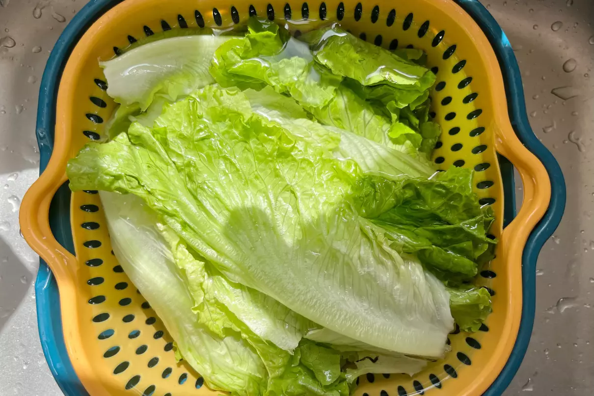 1、生菜200克,掰成一片片后,用清水冲洗几遍,洗干净后沥干水分;