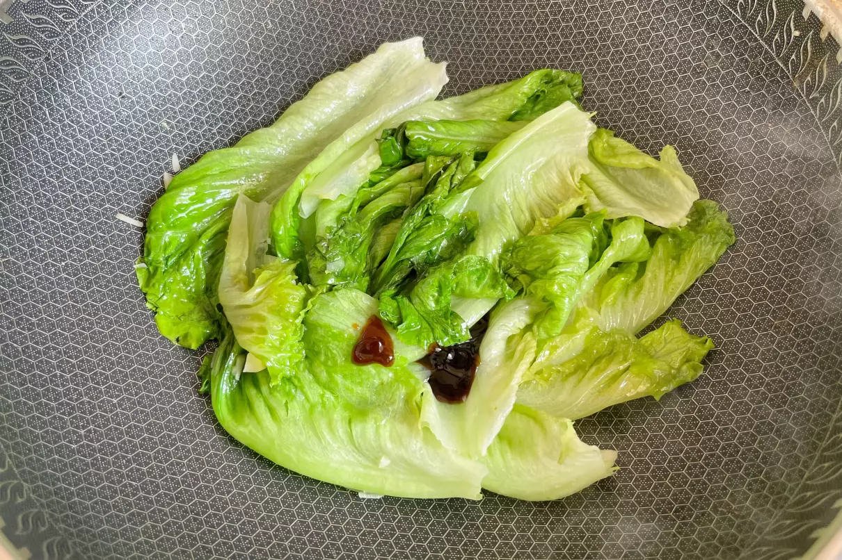 小贴士:炒生菜的时候,一定要大火快炒,这样出锅后的生菜,才会脆爽好吃。