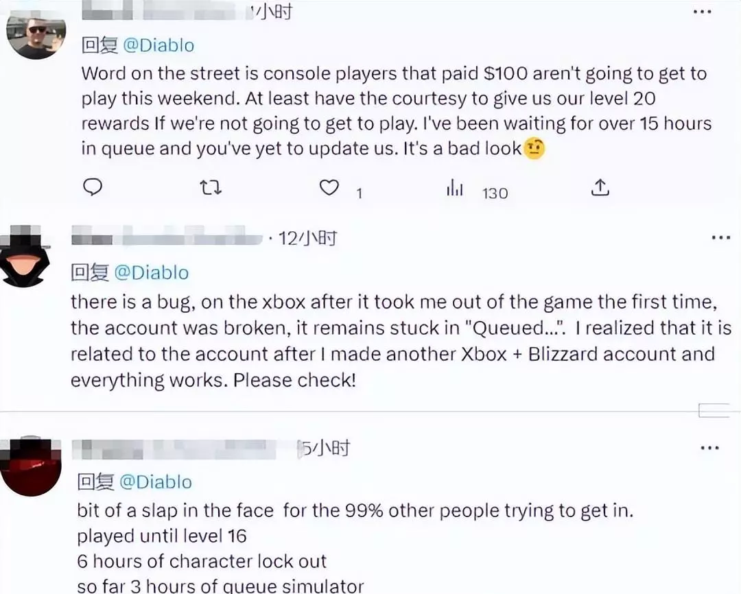 如排队过久,有的玩家表示已经排了15个小时还没进入游戏,还有就是服务器连接失败,导致有玩家排队三小时游戏5分钟,因此有玩家就吐槽这《暗黑4》就是排队模拟器!