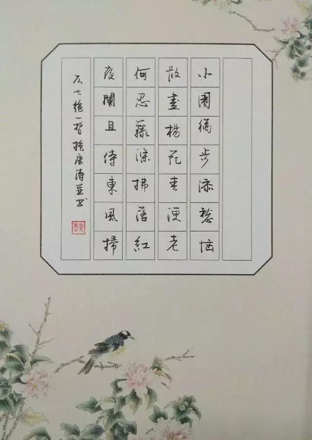 如下图这种格式,是专门写七绝或七言(四句)旧体诗的。只要是小方格,各个书体就都可以写,句末一般不加标点符号。