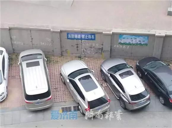 “堵心”墙南侧停有许多车辆停放,记者在地面上没有找到划分停车区域的标志,反而是墙壁上贴有“消防通道禁止停车”的字样。有居民表示,小区有地下车库,但有些车主就是喜欢把车停在小区道路上,也没有人管,带来了安全隐患。