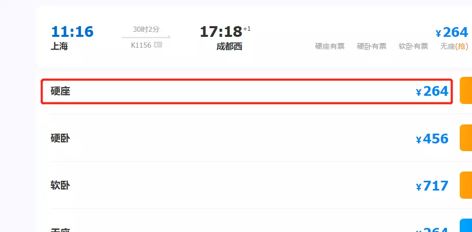 不信,请看上图,上图你看到的,即为该趟列车的票价信息。