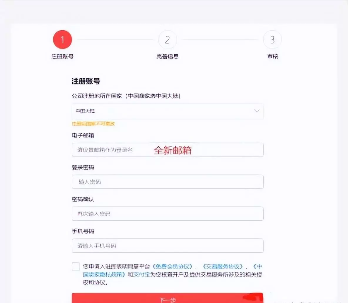 邮箱+手机+企业支付宝(或邮箱+手机+企业法人支付宝(需营业执照))