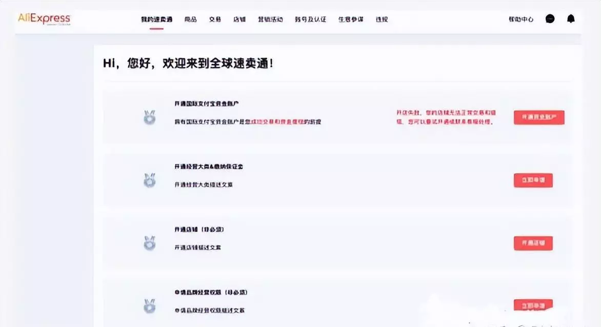 说明:目前仅支持企业在速卖通开店,个体工商户或者个人无法开店。