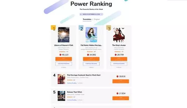 起点国际Power Ranking 排名前5的作品中,女频作品占据2席。