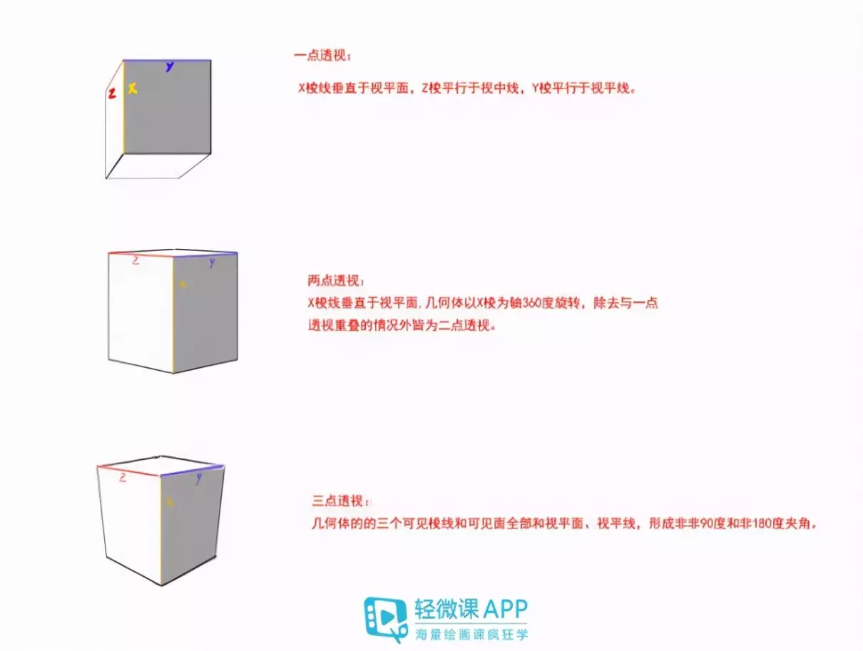 · 一点透视和两点透视的原理是一样的,只是因为物体发生了旋转,观者的角度有了变化而已。