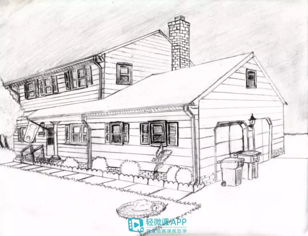 两点透视一般用于绘制建筑物,比如高楼,围墙,房屋等。