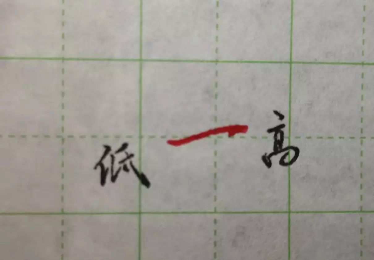 一字,其实就是长横,书写的时候要扛肩,要左低右高。