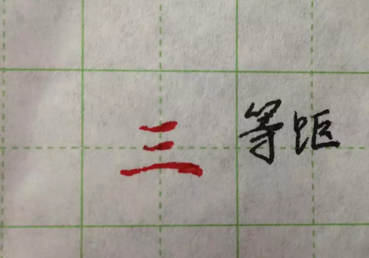 三字,除了三横横画等距外,还要注意中间的短横稍短一点,按顺序排列是,中间是短横,首横是中横,末笔是长横,书写应注意长短变化。