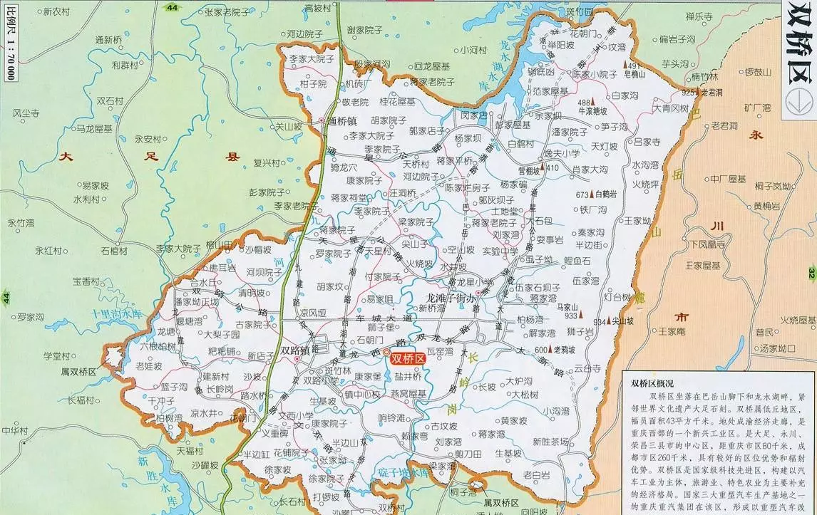 2011年10月27日,经国务院批准,重庆市撤销双桥区和大足县,合并设立大足区。同时,设立市管双桥经济技术开发区。 开发区管辖除原双桥区的龙滩子街道、双路镇、通桥镇外,还包括大足的邮亭镇。面积133平方公里,常住人口11万。