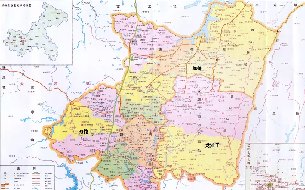 到2010年底,双桥区下辖:双路镇、通桥镇和龙滩子街道办事处,共14个村。全区面积43.1平方公里,常住人口4.74万。