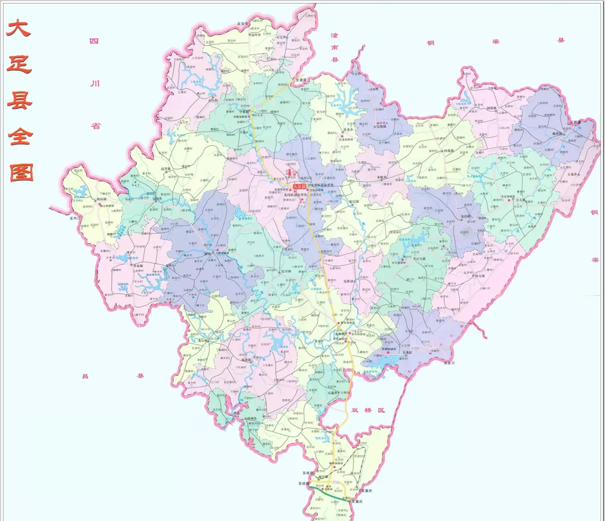 1、将大足县双路公社,元通公社的青春、天星、白鹤、天桥4个生产大队,土桥公社的茅店、新民2个生产大队划归新置之行政区,由重庆市直辖。