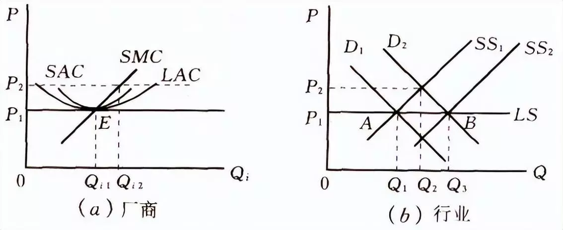(7)成本不变行业:行业产量增加所引起的生产要素需求的增加,不会影响生产要素的价格。成本不变行业的长期供给曲线是一条水平线