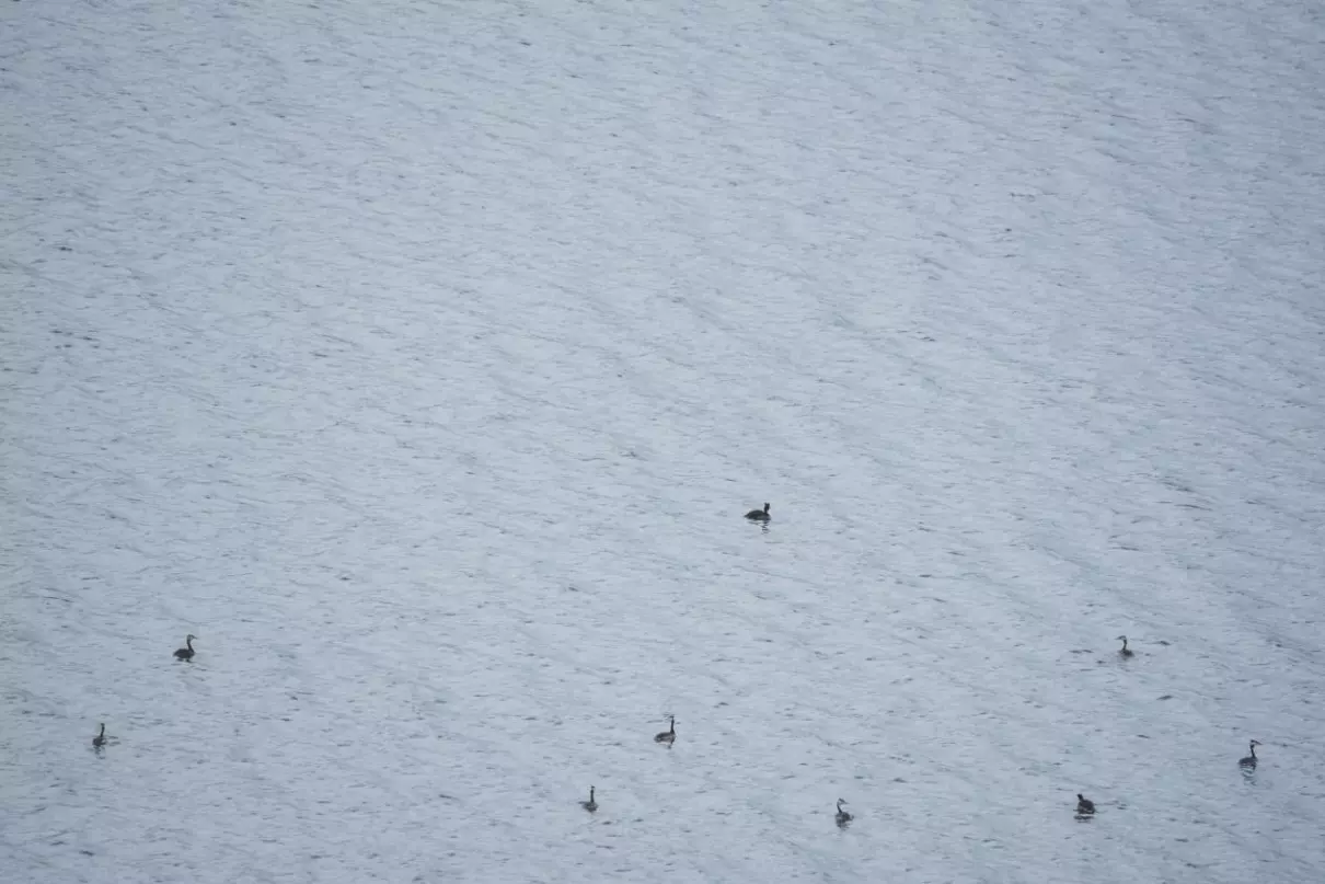 凤头䴙䴘,水中游弋