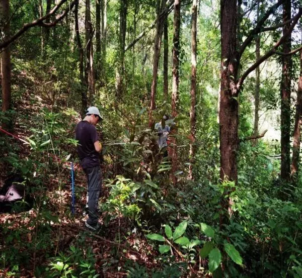调查人员在梧桐山开展植物样方、样线调查。