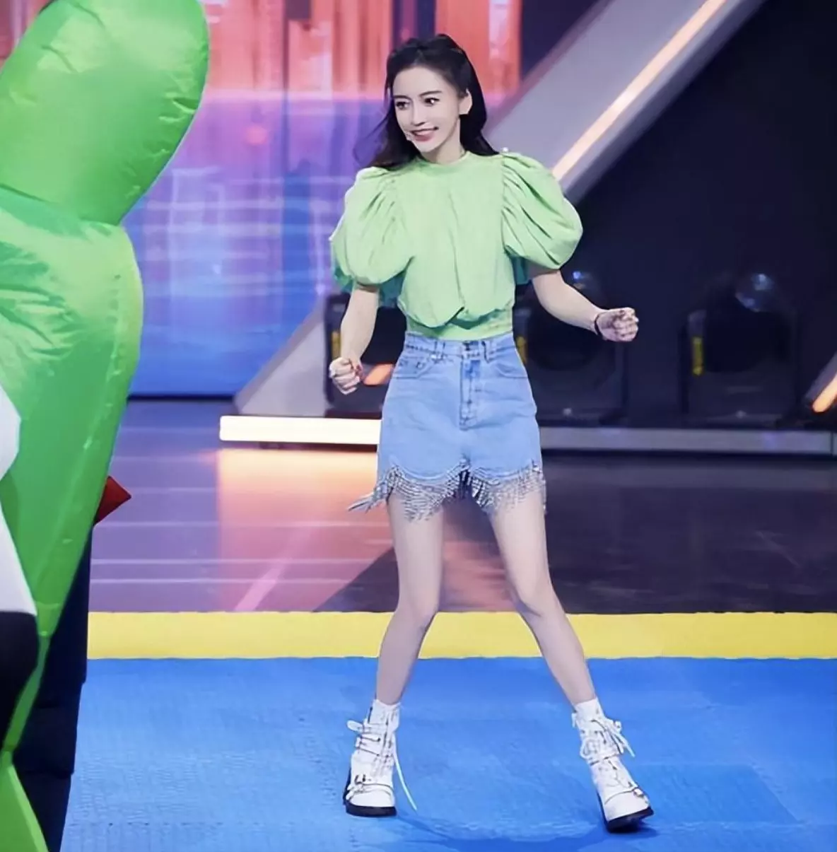 吉娜走路不知为何一瘸一拐,一深一浅,一直在垫脚,明明是平地,却让她走出了颠簸感,还有人戏称她走路像“铁拐李”。