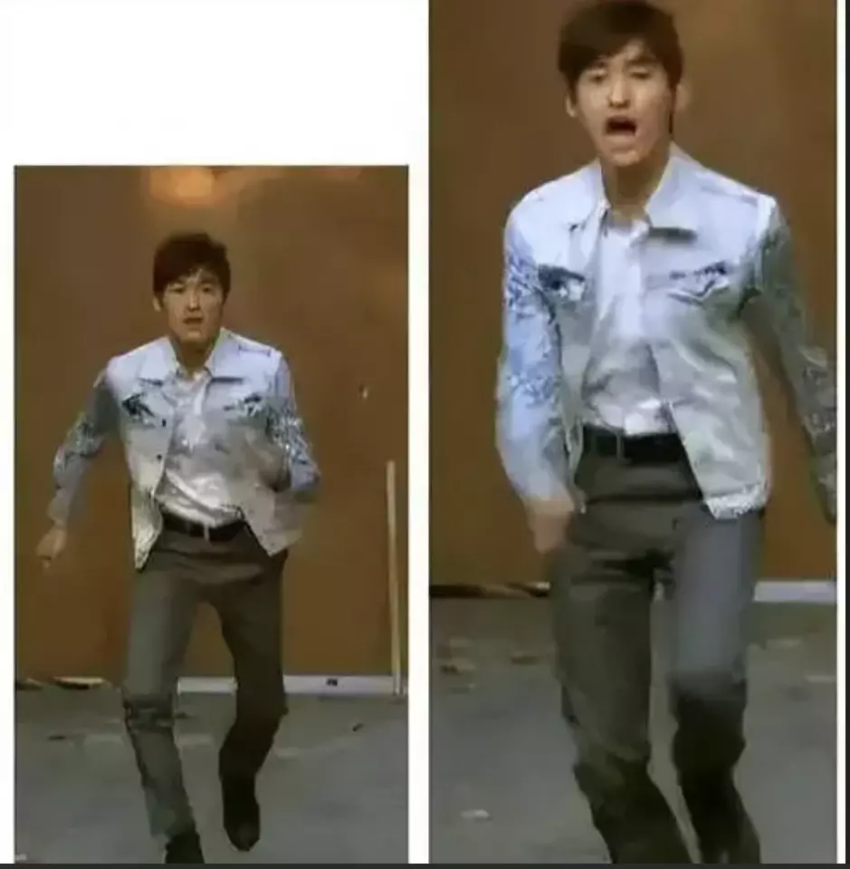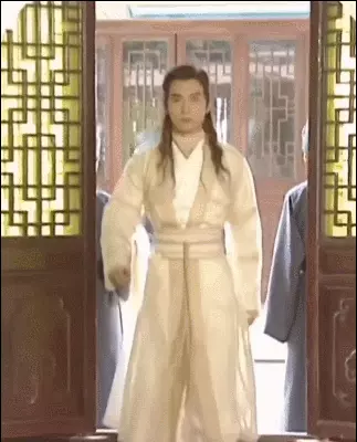 就是很明显的故意凹动作,看起来特别的扭捏违和不自然,与电影《唐伯虎点秋香》中四大才子出场时刻设置的动作很像,但人家故意这么做的很贴合剧情。