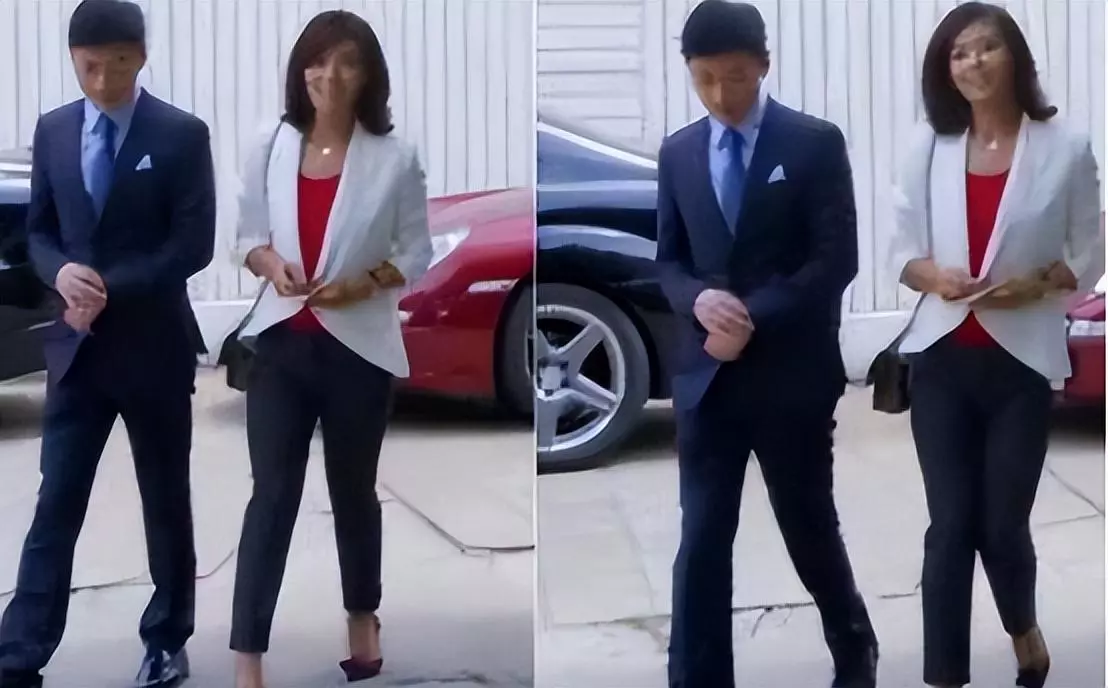 在镜头里,哪怕她刻意调整走路姿势,但细看依然不协调,长短腿还是挺明显的,上半身晃得也很厉害,对比旁边的郎朗就自然多了。