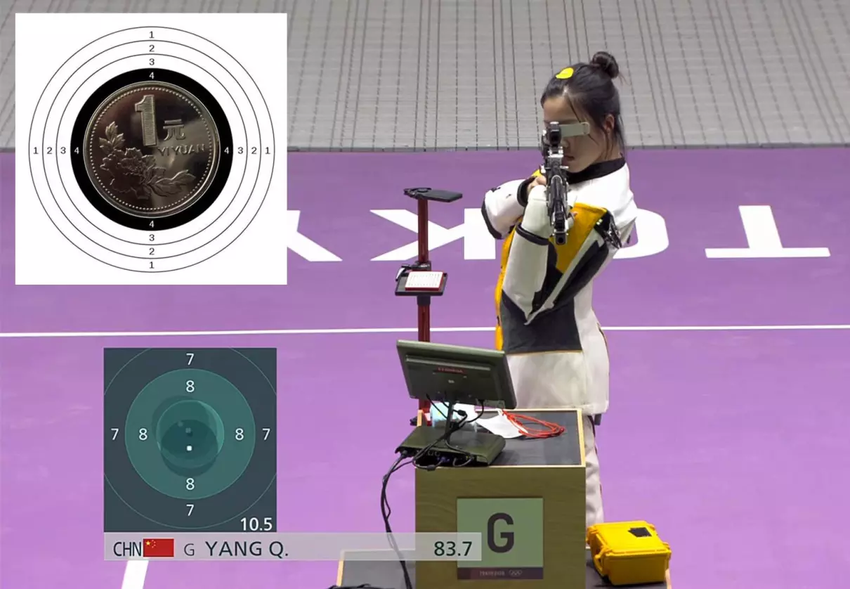 中国21岁女子射击运动员杨倩在东京奥运会10米气步枪比赛中力压群芳,一举夺得首枚金牌,消息传来,国人振奋。有朋友说,10米气步枪不容易,因为它的靶心只有1元硬币大小,果真如此?
